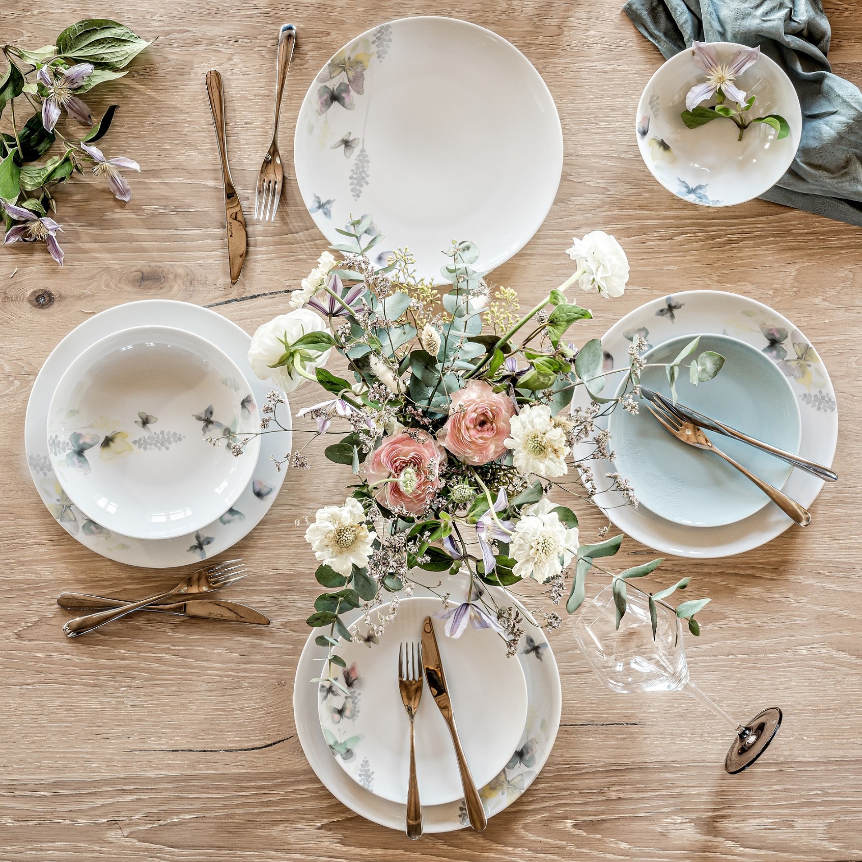 Wiosenna nowość od Fyrklövern – kolekcja BELLA – to hołd złożony naturze i temu, co w niej najpiękniejsze. Inspiracją przy tworzeniu serwisu był stan między jawą a snem, w którym eteryczne motyle, tańczące na białej porcelanie, przywodzą na myśl wieczne lato, niezależnie od pory roku. BELLA to ponadczasowa estetyka najwyższej jakości, w nowoczesnym designie niosąca przesłanie wolności, radości i lekkości. Dzięki niej można przygotować aranżację stołu odpowiednią na wiosnę, na Wielkanoc, na lato i na całe życie!